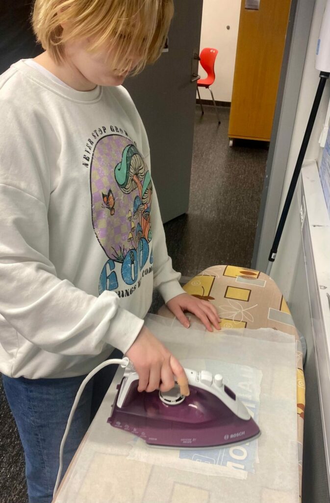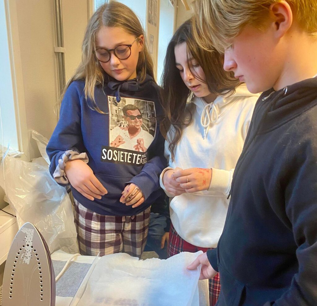 Da Østhavet var innom, jobbet elevene med å stryke og smelte plastposer om til materialer de kan bruke til andre ting. Lærer Heidi veileder elevene samtidig som hun forteller hvordan de jobber med elevene for å øke kunnskap og bevisst angående plast som materiale. Hva er bra med plast? Hva er ikke bra. Hvor er det mest hensiktsmessig å bruke plast og hvor kan plast være mest ødeleggende?