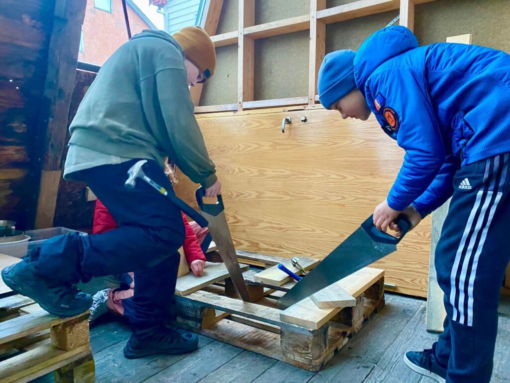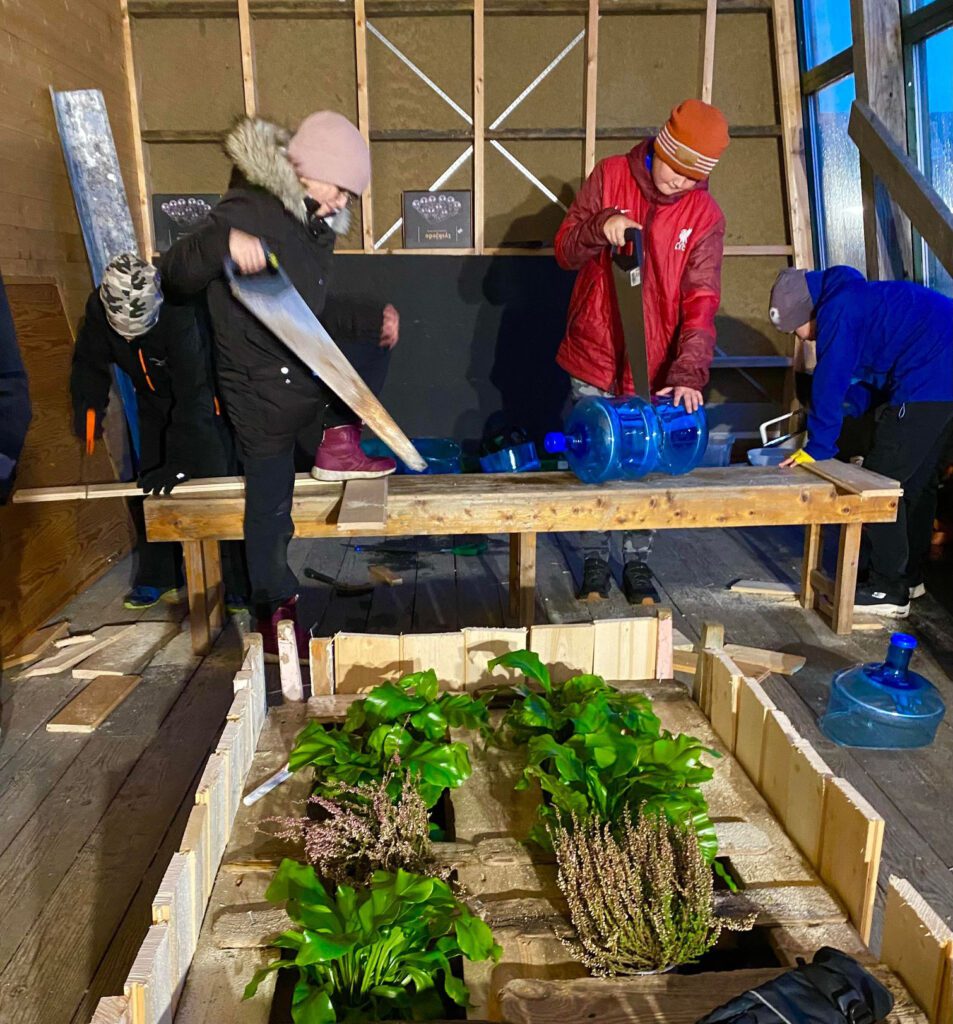 Elevene hadde allerede samlet inn materialer som de hadde funne rundt om på øya, materialer som ble brukt til å lage visuell kunst inne på fellesskapsdrivhuset. Over fire skoletimer fikk elevene vise sine praktiske og kreative egenskaper innenfor gjenbruk, arkitektur og design. Og det er ingen tvil om at dette var kunst- og håndverksoppgaver elevene satte pris på.