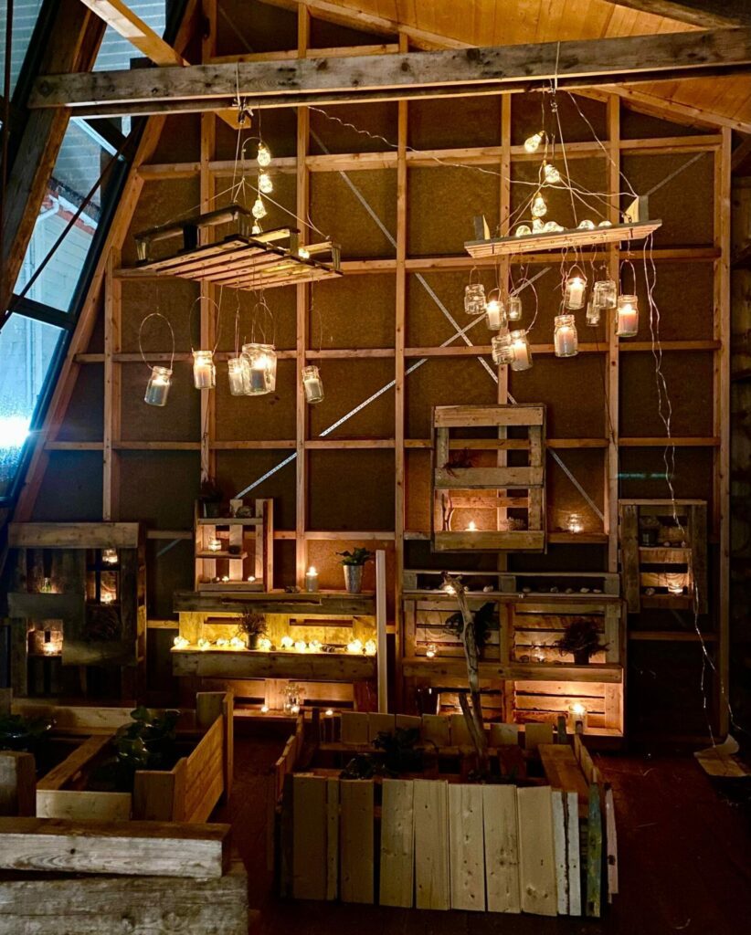 I en flott sosial ramme med bruk av hammer, sag og skrumaskiner, ble flotte hyller og lysoppheng satt sammen til glede for alle som skal besøke drivhuset.