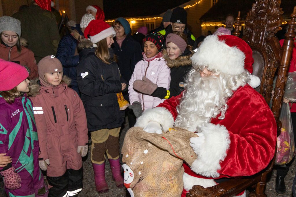 Vardø Damekor kjørte i gang julestemningen med sang og musikk, og etter hvert kom selveste julenissen. Og alle barna som våget å hilse på nissen fikk en liten gave med noe godt i.