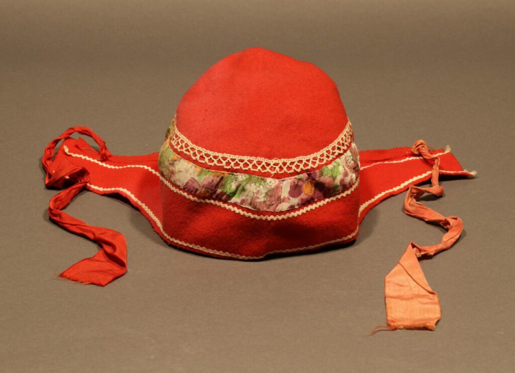 Koftenes tilbehør består av en kvinnelue, et koftebelte, en stjernelue, to skalleband for mann, et skalleband for kvinne og et par kommager. Koftene og tilbehøret har detaljer som er spesielle både for tidsperioden (1930-1950) og for Indre Varanger, så vi kan anta at de ble innkjøpt eller bestilt der.