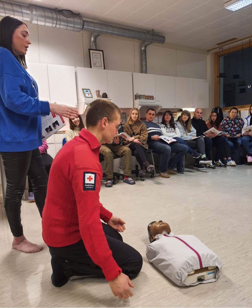 Mer enn 30 ukrainere deltok denne gangen på kurset, som ble holdt på kveldstid. Siden språkferdighetene i norsk enda ikke er gode nok, så hadde Røde kors og voksenopplæringa fått hjelp fra frivillige som hjalp til med å oversette og forklare. Tanja Borgersen og Olga Poluda var selvfølgelig til uvurderlig nytte.