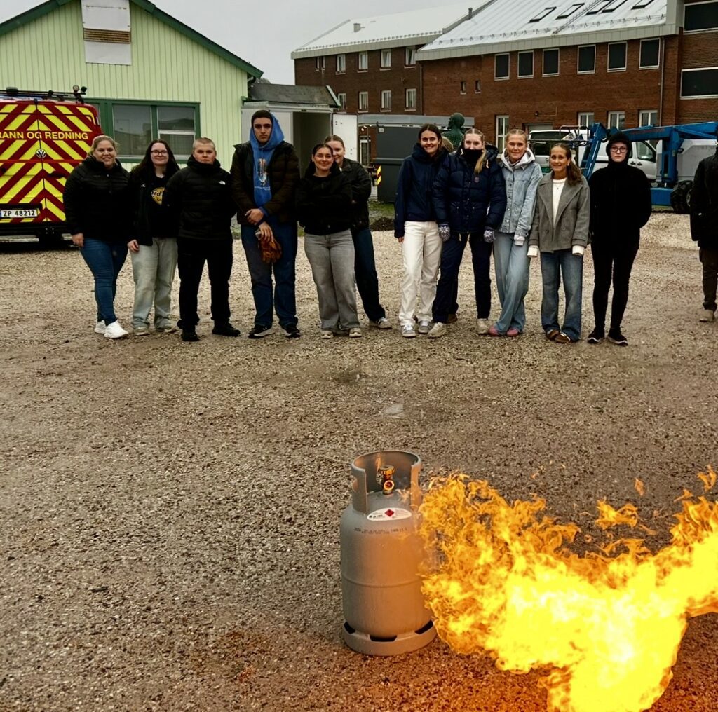 Slukke med pulverapparat var det mange som ikke hadde gjort før. Noen hadde bare så vidt prøvd før, men følte seg usikker. For å unngå at man bare rusjet gjennom kurs, med alle elever på én gang, så valgte vi å dele klassene opp i tre grupper. Med for store grupper vil det kun gavnet de færreste. Med tre mindre grupper fikk de brannansatte tjenestemennene mer tid å forklare, mer tid for elevene selv å få prøve, forteller Isabell videre.