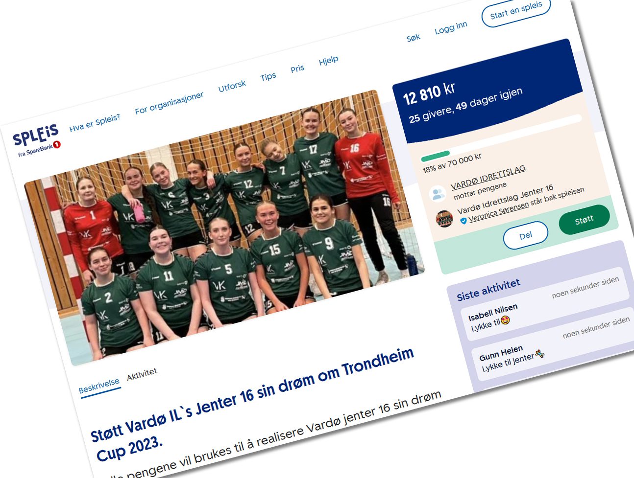 Vardø ILs håndballjenter drømmer om å delta på Rema 1000 Trondheim Håndballcup i slutten av april, og har i den forbindelse startet en spleis.