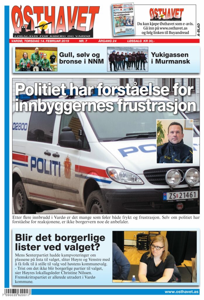 Anne Therese Eriksen nomineres til årets vardøværing av Østhavets lesere. Mange innbyggere føler frykt etter flere innbrudd de siste månedene. Politiet skjønner frustrasjonen, men anbefaler ikke borgervern. Debatten om oppdrett til havs raser. De borgerlige partiene har problemer med å finne folk til kommunevalglistene.