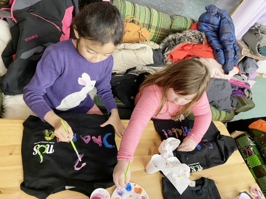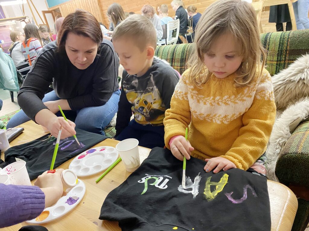 Med seg hadde barna foreldre og voksne, som nok koset seg like mye som barna. Den første kunstneriske oppgaven til barna var å designe og lage sine helt egne kunstner t-skjorter med navnet sitt på. Deretter var det klart for barna til å hive seg løs på andre kreative og kunstneriske oppgaver.
