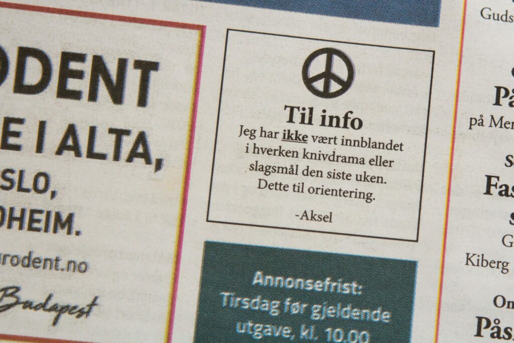 Aksel Robertsens humoristiske annonse om at han ikke var knivstukket, er kanskje den mest leste annonsen i Østhavet gjennom tidene.