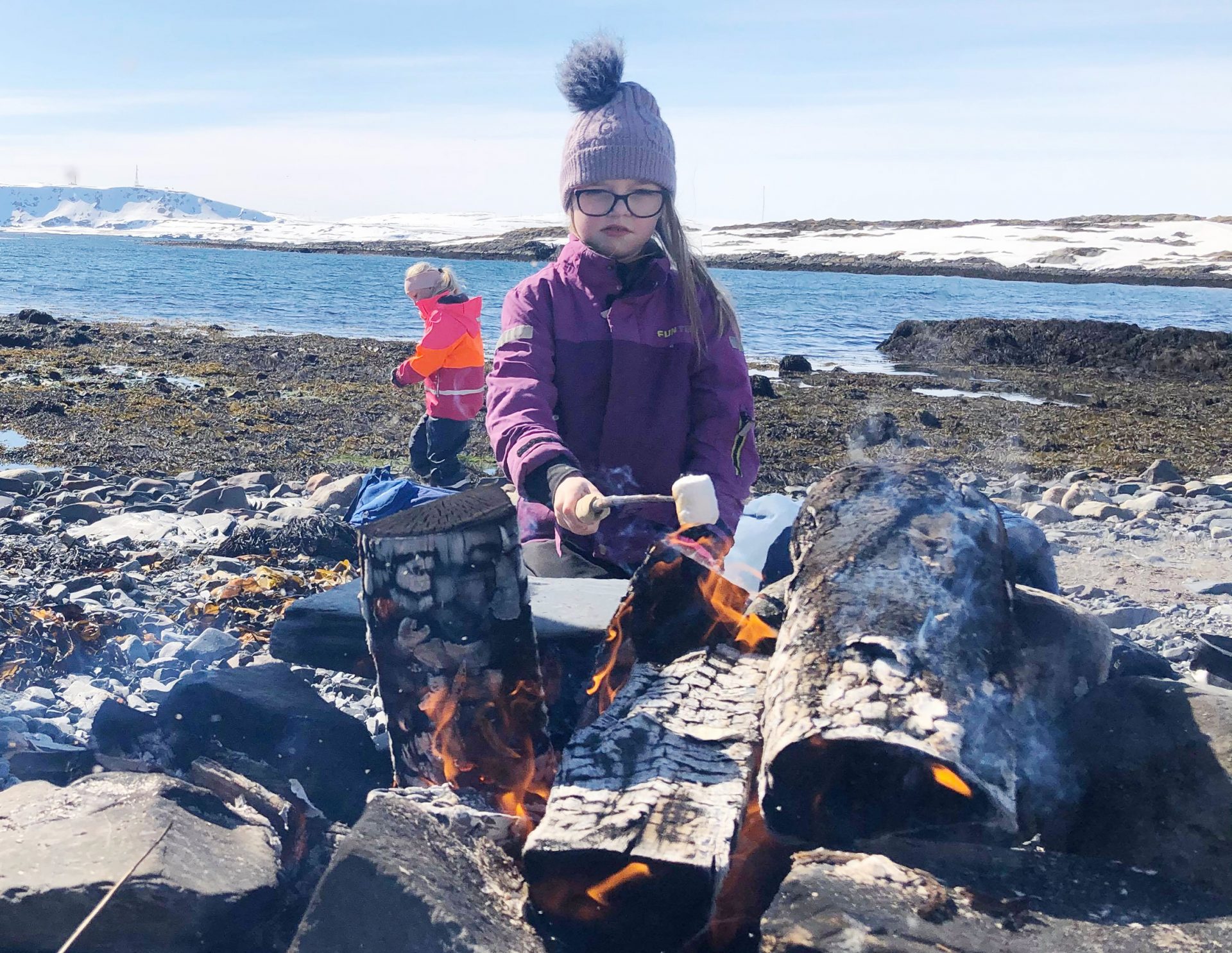 Bål hører selvfølgelig med, og Vardø Friluftsforening bidro med pølser og juice til flinke og ivrige elever. Litt grilling ble det også.