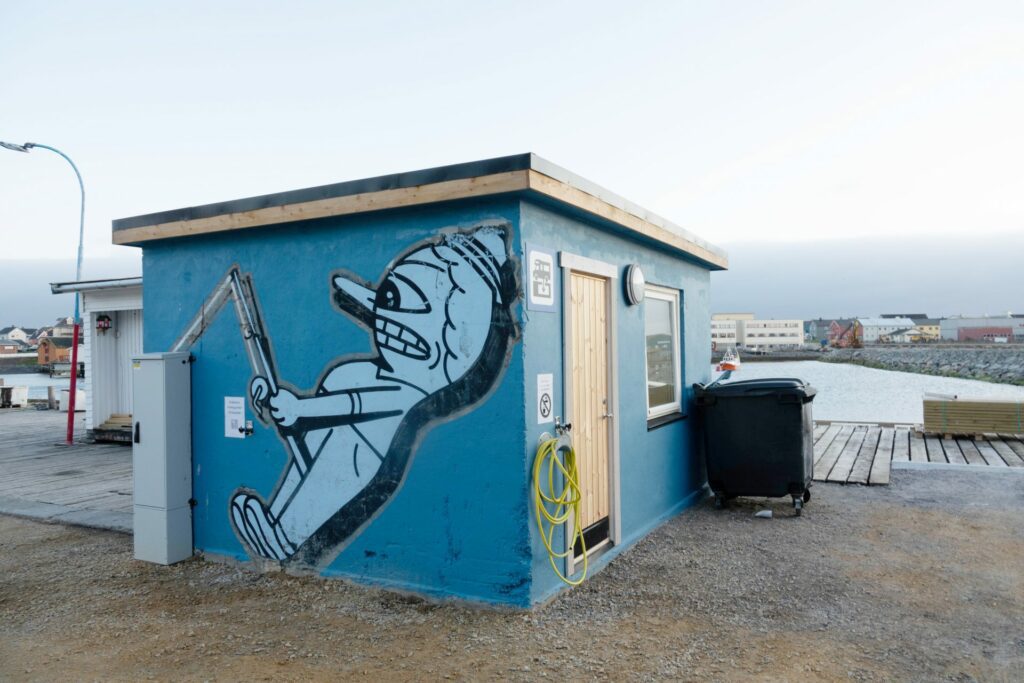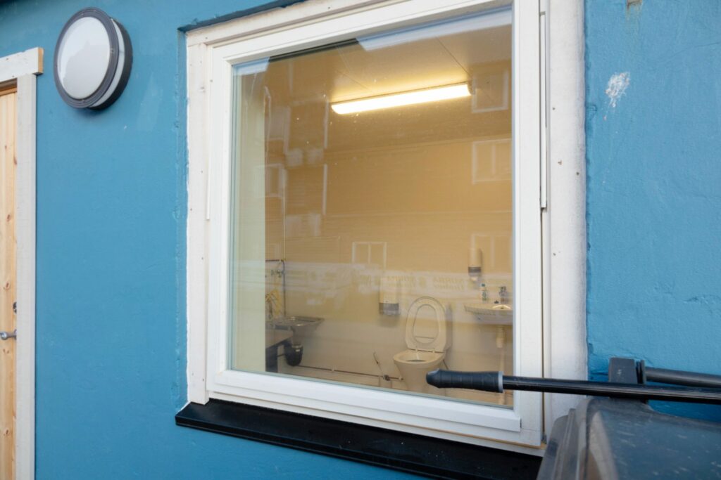 Det er bra at man har fått tømmestasjon for bobiler i Vardø, men ettersom det er et offentlig toalett i bygget burde man kanskje gjøre noe med innsynet. Det er ikke alle som driter i om man blir observert under skjitarbeidet.