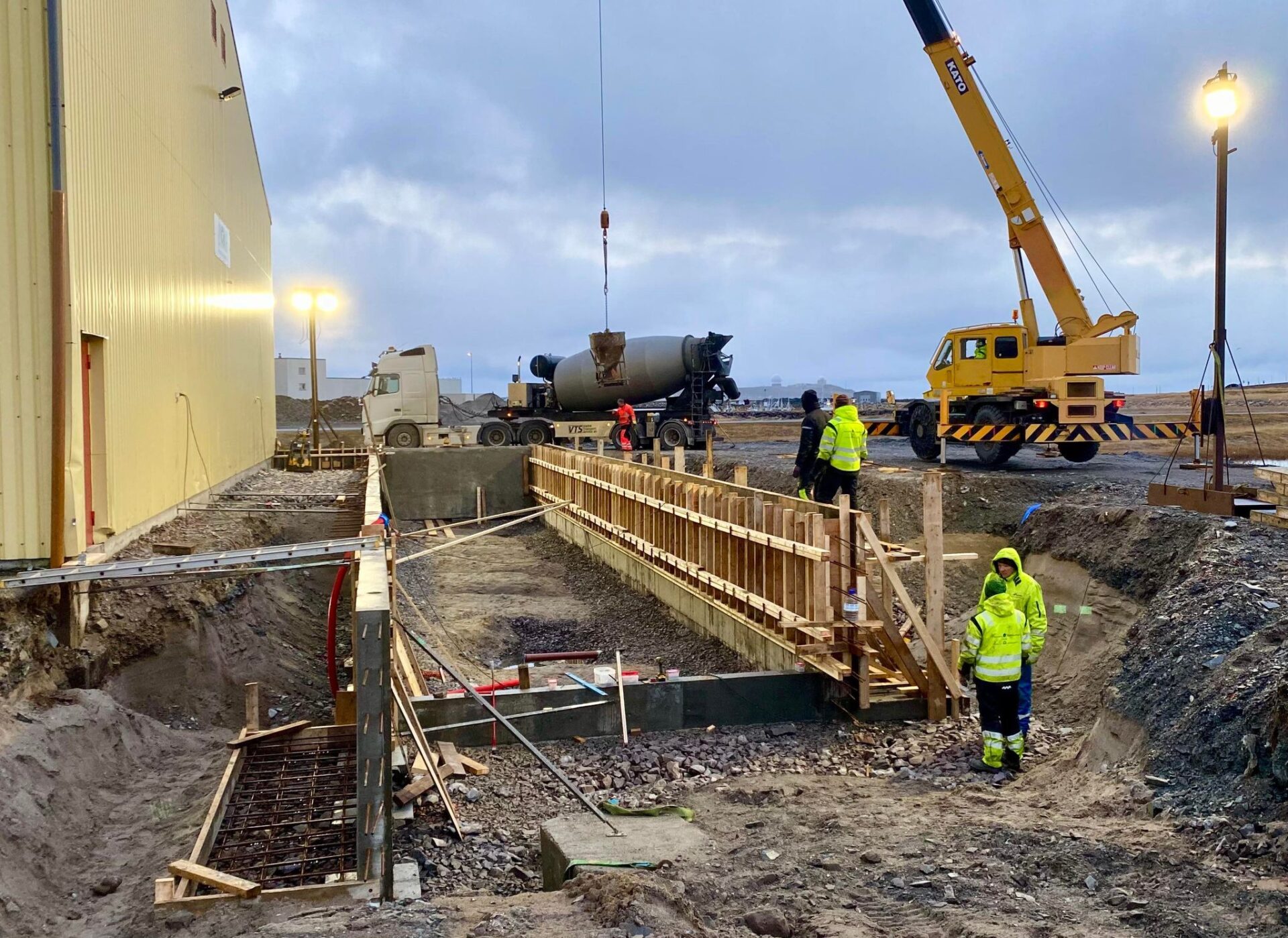 Utbygginga av ØFAS på Svartnes går stødig fremover. Fundamenteringer og forskalinger er gjort og betongbilene leveres betong.